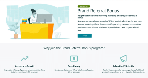 Looking for a way to stretch your marketing dollars further? With Amazon’s Brand Referral Bonus program, you can not only bring in more traffic but also earn an average of 10% bonus on qualifying sales when directing customers from search engines, social platforms, or other external channels to your Amazon listings.