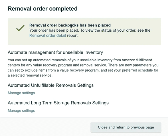 Amazon also allows you to automate removal for unsellable or aging inventory.