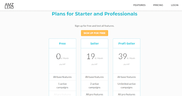 Amzlead offers a free plan that supports one campaign indefinitely. Paid plans allow sellers to manage multiple campaigns but may feel expensive, especially for Amazon US sellers due to Euro-based pricing.