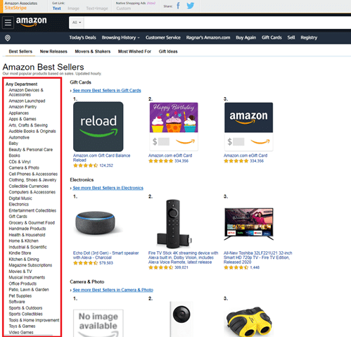 Amazon’s own platform can serve as your best niche finder. Start by selecting a department and exploring subcategories. Review the “Best Seller Rank” and product details to identify which items perform well.