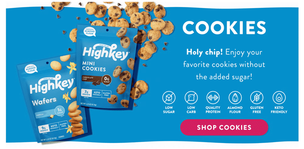 Highkey sells low-sugar, keto-friendly cookies and snacks. Their USP is simple: they provide healthier versions of your favorite treats without unnecessary sugar and carbs.