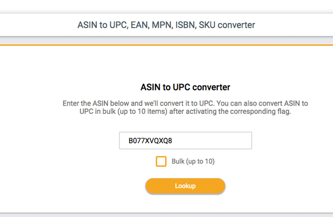 Simply enter the ASIN, and the tool will display the related UPC.